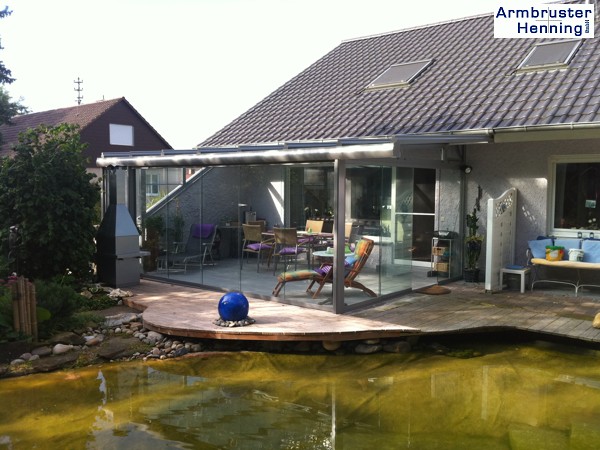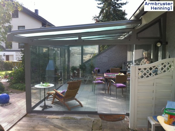 Eine komplett verglaste Überdachung, mit Leichtlaufschiebetüren (Rahmenlos). Die Besonderheiten sind für Sie leicht zu erkennen!